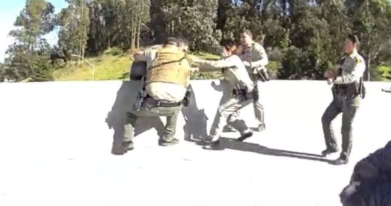 As the person shifted position and looked down, appearing poised to jump, Deputy Cosio seized an opening and grabbed him. Deputy Osuna and CHP Officers Duckworth and Simonian moved in to help, and together they pulled him back over the railing.