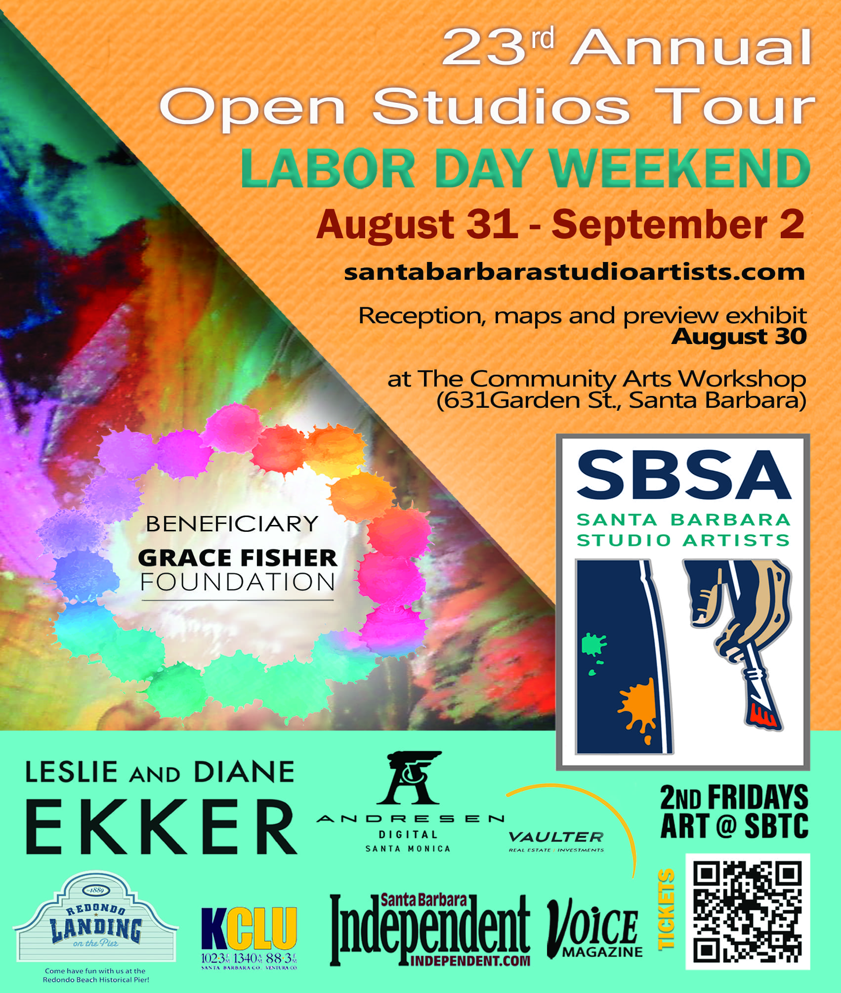 Join us for one of the most eagerly anticipated art events on the Central California Coast: the annual Santa Barbara Studio Artists’ annual Open Studios Tour, Labor Day weekend. Twenty-four acclaimed Santa Barbara artists—including five new members!—will open their doors to visitors Saturday, Aug. 31 – Monday, Sept. 2, from 11 a.m. – 5:00 p.m. daily. Tickets and tour maps will be available at the opening reception from 5:00-8:00 pm on Friday, Aug. 30, and throughout the weekend at the Community Arts Workshop, 631 Garden Street. Tickets are $25 (children under 12 free) and will also be available online (www.santabarbarastudiorartists.com) after July 1, 2024.
