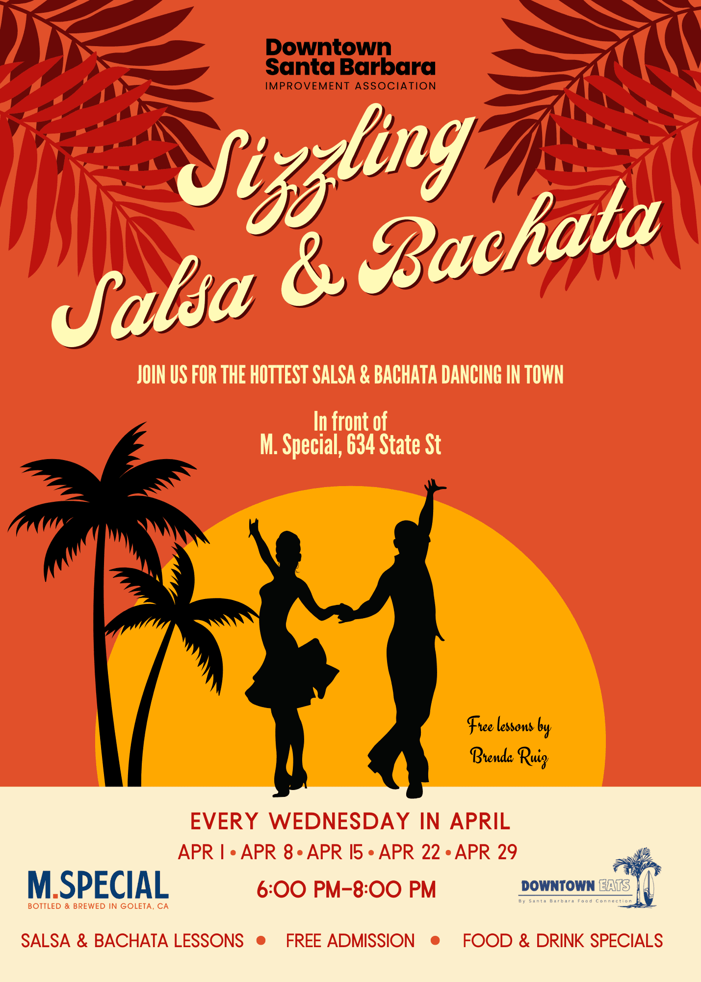 Join us every Wednesday in April to enjoy free salsa & bachata lessons in front of M. Special (634 State Street) led by the amazing Brenda Ruiz from 6:00 PM to 7:00 PM, followed by open dancing from 7:00 PM to 8:00 PM. This event is open to the public and free of charge. M. […]