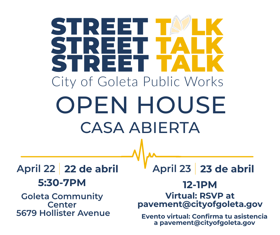 April 22 from 5:30 – 7:00 p.m. at the Goleta Community Center and April 23 from 12:00 – 1:00 p.m. via Zoom The City of Goleta Public Works Department is continuing its Street Talk community engagement initiative with an upcoming Open House designed to bring community members together with staff to discuss transportation and Public […]