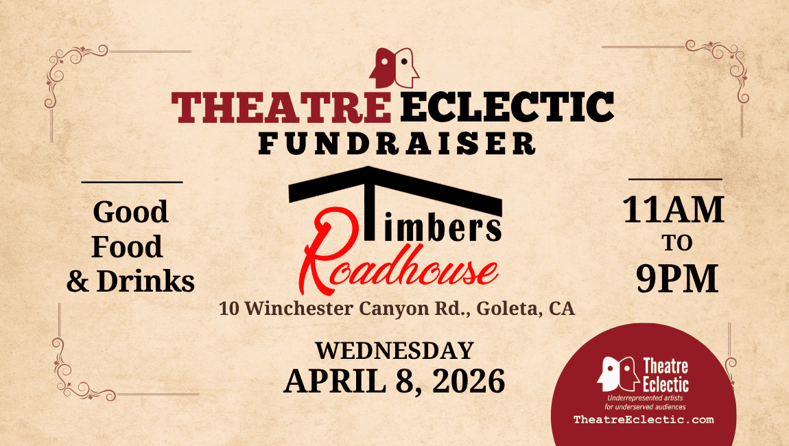 Join us for a Theatre Eclectic fundraiser at Timbers Roadhouse, 10 Winchester Canyon Rd., Wednesday, April 8 between 11 AM and 9 PM. Come for lunch or dinner. We’d LOVE to see you and have your support!! (Don’t forget to mention “Theatre Eclectic” to server.) 🥘 Good food. 🍹 Yummy drinks. 🍽️ 20% of proceeds […]