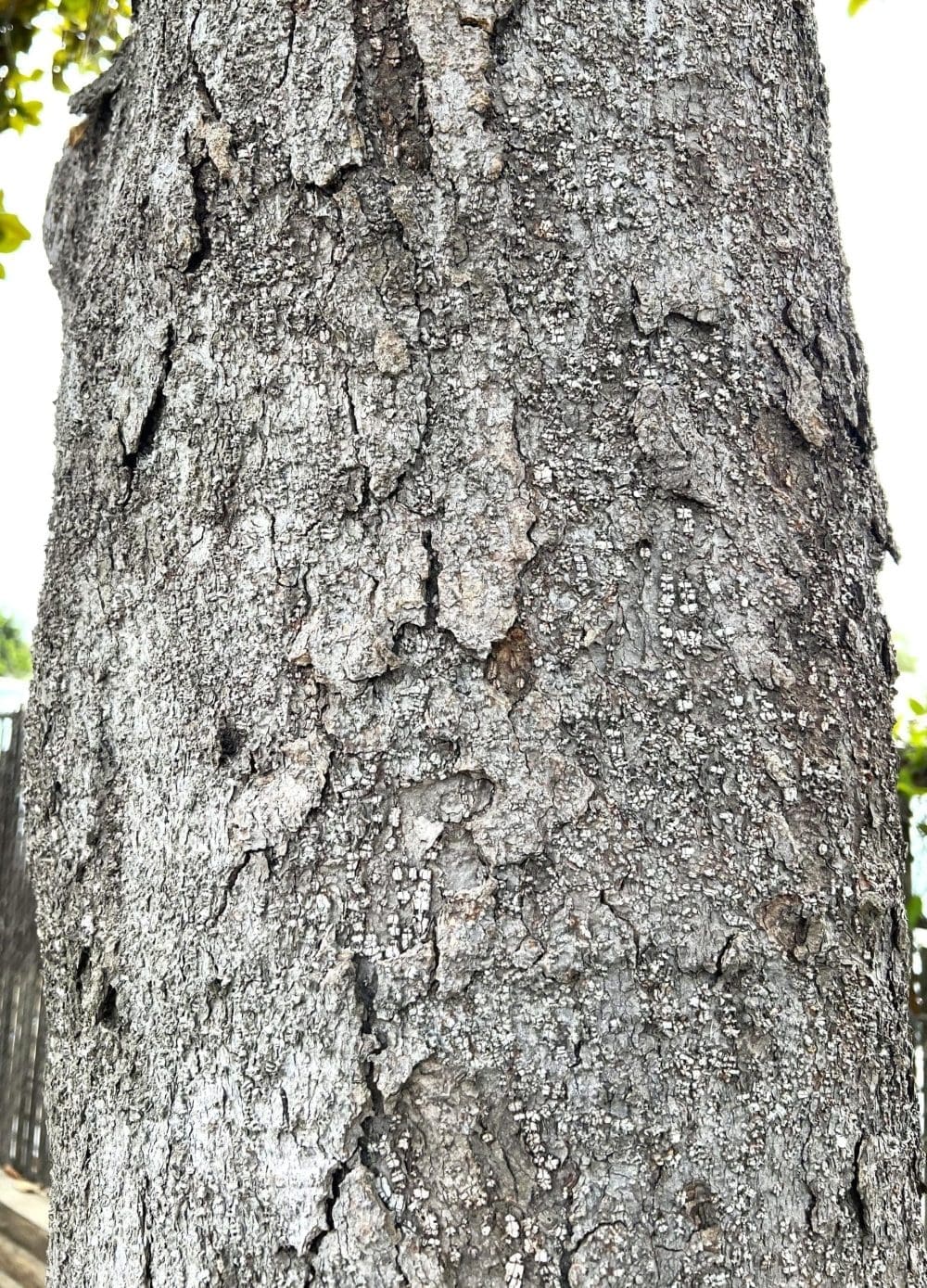 50- feet in width. When the tree is young, its bark is light gray and smooth; with age, it will