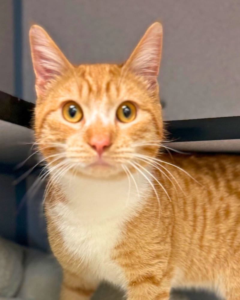 This is Cinnamon Toast Crunch, an approximately one-year-old Domestic Shorthair at our Santa Maria campus, and he is sweet enough to justify an entirely new cereal mascot category. He is friendly, outgoing, handsome, and very much the “taste you can see” if the taste were cuddles, playtime, and a cat who wants to be involved in whatever you are doing.