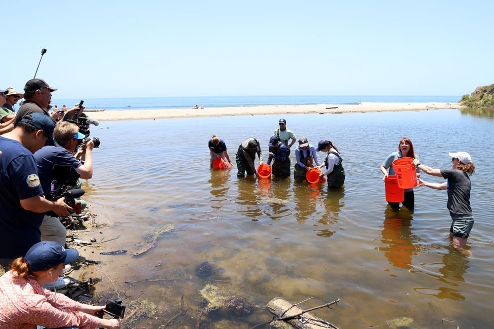 Heal the Bay and the Aquarium of the Pacific were ready to take the gobies, and cared for them until June 17, when Spies, Hoolihan, three CSUCI first year ESRM students, and partners returned the gobies to the lagoon while officials from the cooperating agencies stood by as the scientists and wildlife officials.