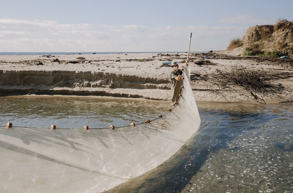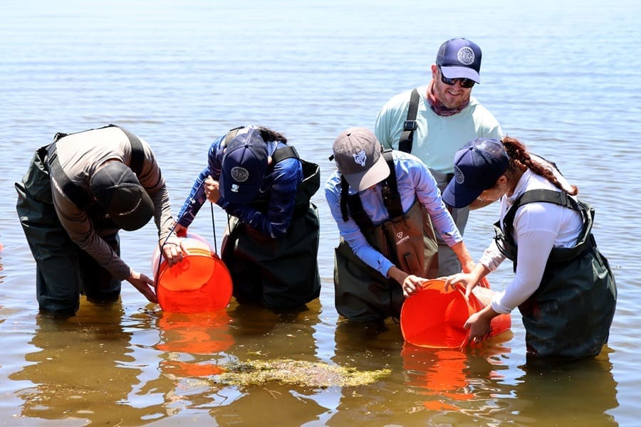 Armed with three Coleman coolers, hand nets and larger, weighted “seine” nets, Spies, Hoolihan and the other volunteers splashed into the lagoon in full body waders and masks to guard against the smoke.