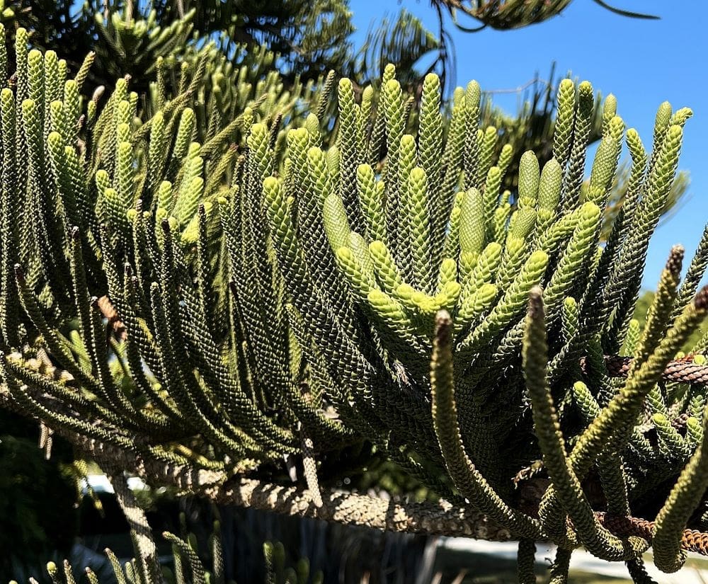 The Norfolk Island Pine is a majestic conifer that can reach heights of 200 feet tall in its native homeland, Norfolk Island, which lies off the coast of Australia in the South Pacific. Despite being native to a remarkably tiny island (an area of only 14 square miles!), this tree is now widely grown in tropical, sub-tropical, and Mediterranean climates around the world – and as far north as Ireland.