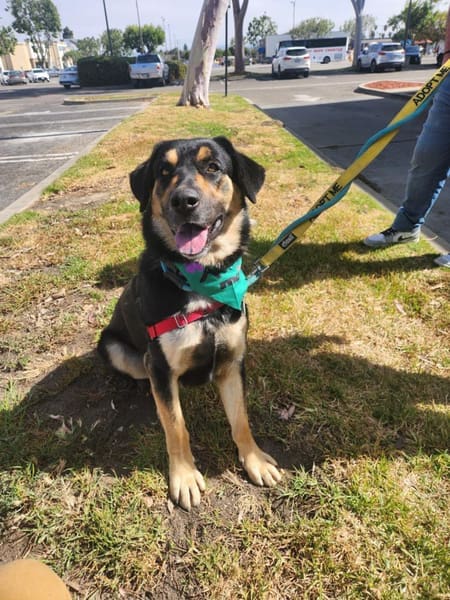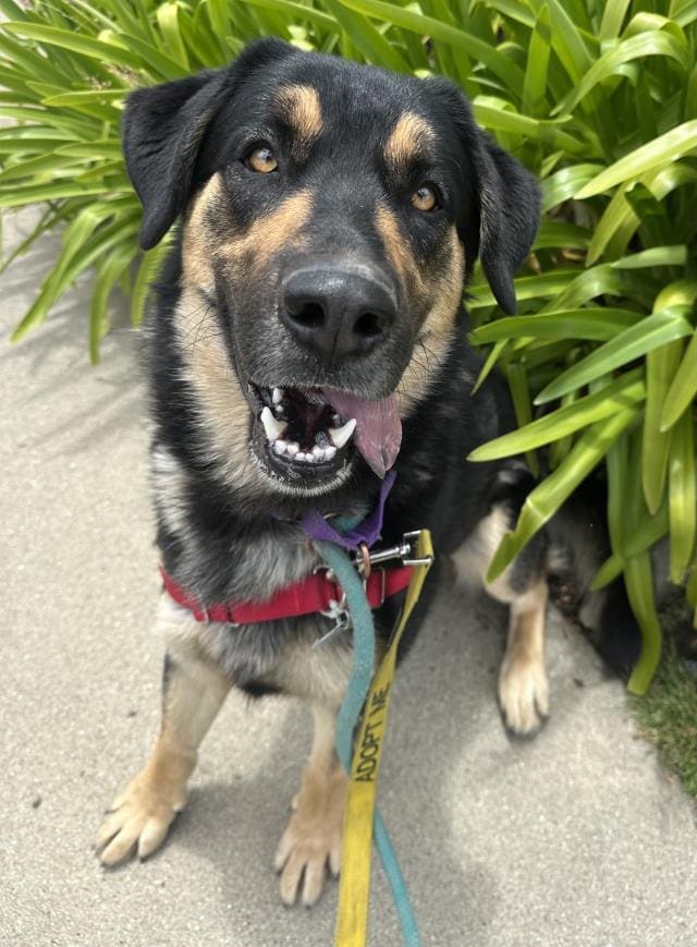Donatello is a 2-year-old male German Shepherd and Anatolian Shepherd mix dog, weighing approximately 77 pounds, and is available for adoption at the Lompoc Animal Center. Donatello is intelligent and requires someone to provide him with ample mental stimulation.