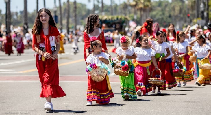 Locals and visitors lined Cabrillo Boulevard from Castillo Street to the Chromatic Gate to see horses, donkeys, mules, floats, carriages, dancers, singers, and fantastical costumes.
