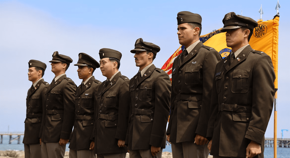 Abreezy overcast sky gave way to a sunny afternoon as students, family, friends, mentors and speakers gathered at Goleta Beach for UC Santa Barbara’s U.S. Army Reserve Officers’ Training Corps (ROTC) Surfrider Battalion commissioning ceremony. Earning their gold bars and first salutes, seven cadets advanced to the entry-level officer rank of second lieutenant.