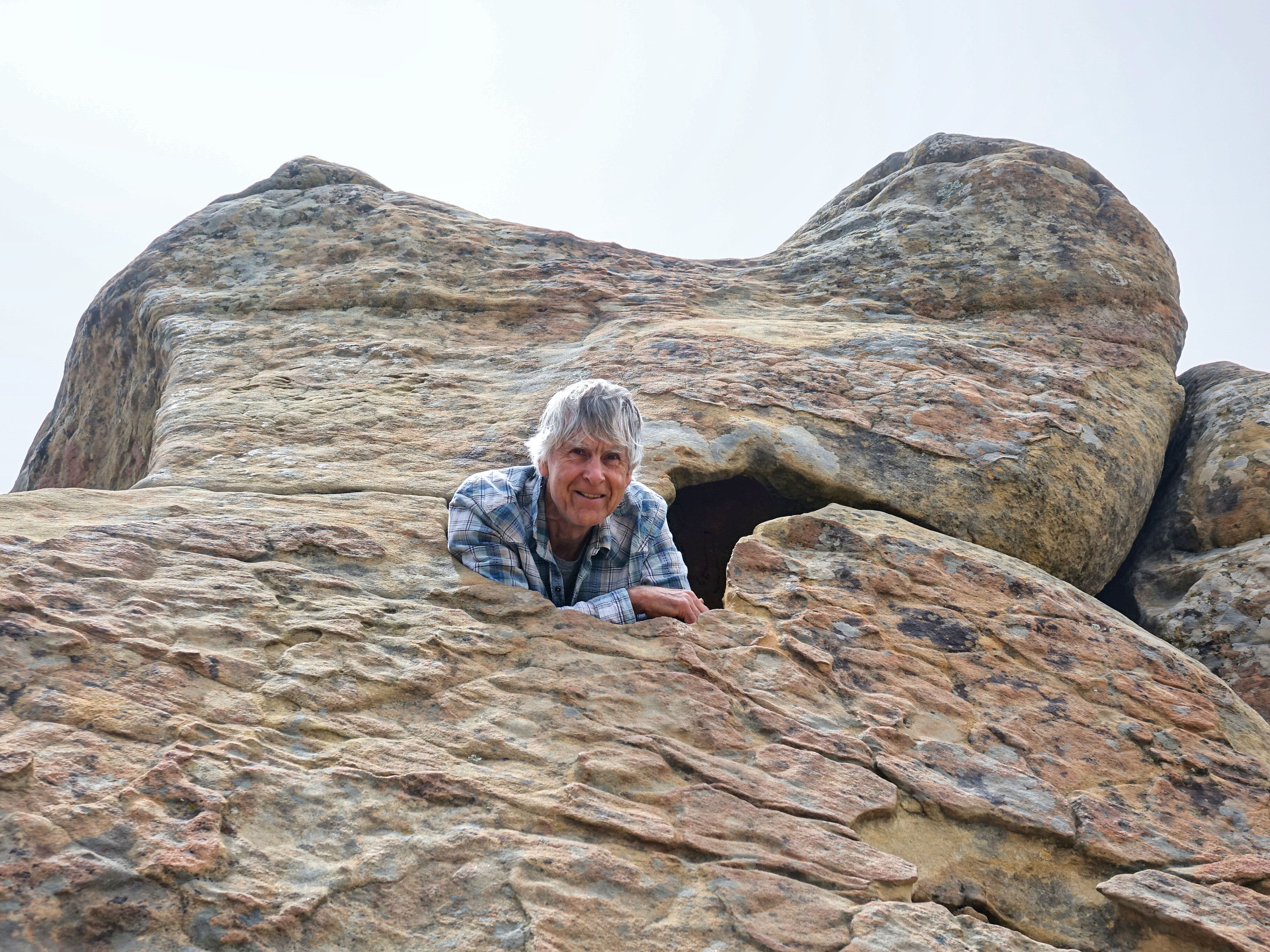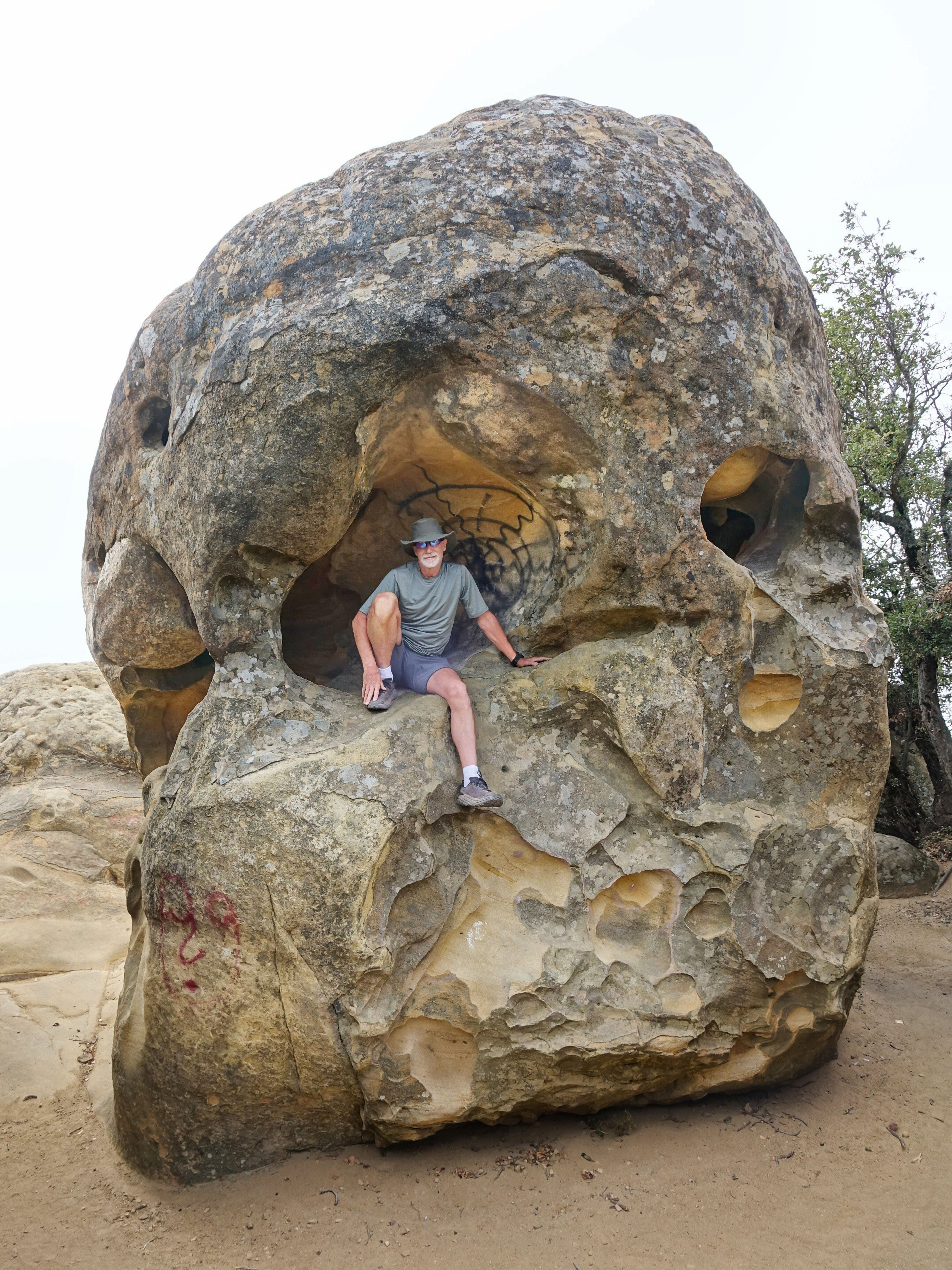 Phil is a fellow hiker and unicyclist, but far beyond my level in both skills! Here he quickly made his way up into this rock that resembles a skull.