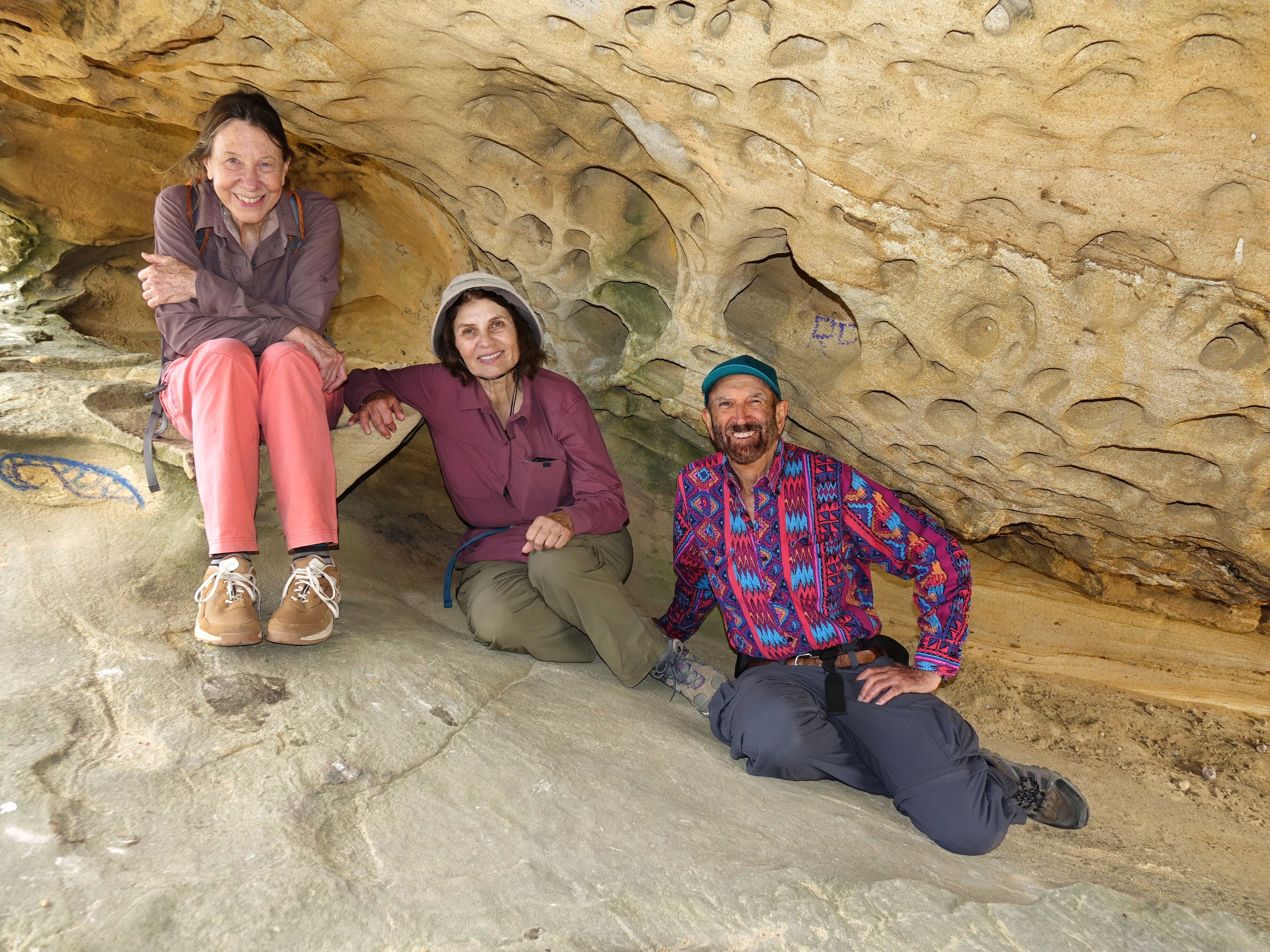 Here Martha posed with Tatiana and me inside that same cave rock. Notice the eroded texture of the rock. The same as you will see later inside the mouth of the Lizard.