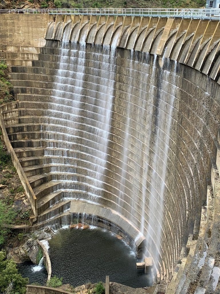 Juncal Dam spilling, April 6, 2020. Jameson Lake reached 100% capacity with the rainfall received in early April. A bathymetric study completed last year revealed that the lake holds about 30% less than it did when first built. While Jameson Lake is full, Montecito Water District is resting its wells to support groundwater recharge, and moving forward with plans to diversify its water portfolio and ensure the community’s future water needs will be met. (Photo credit: Alan Prichard, Dam Caretaker)