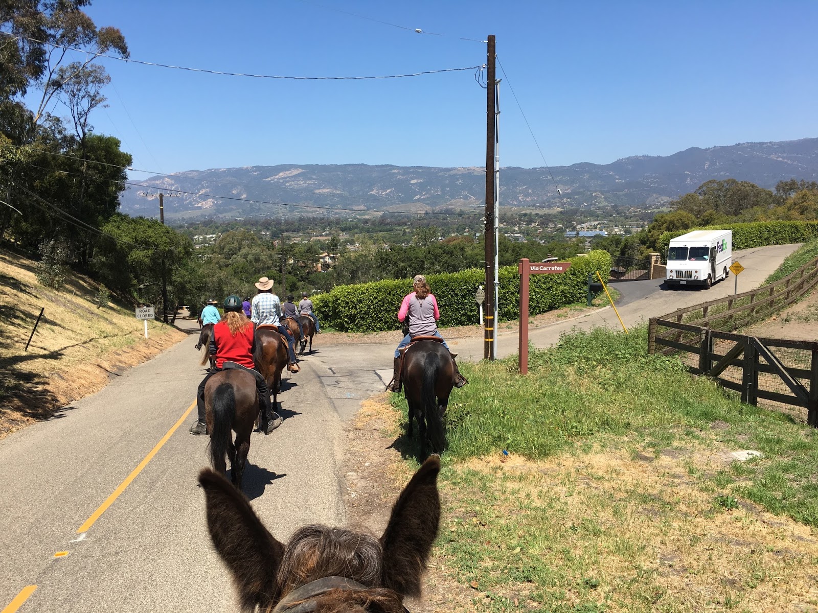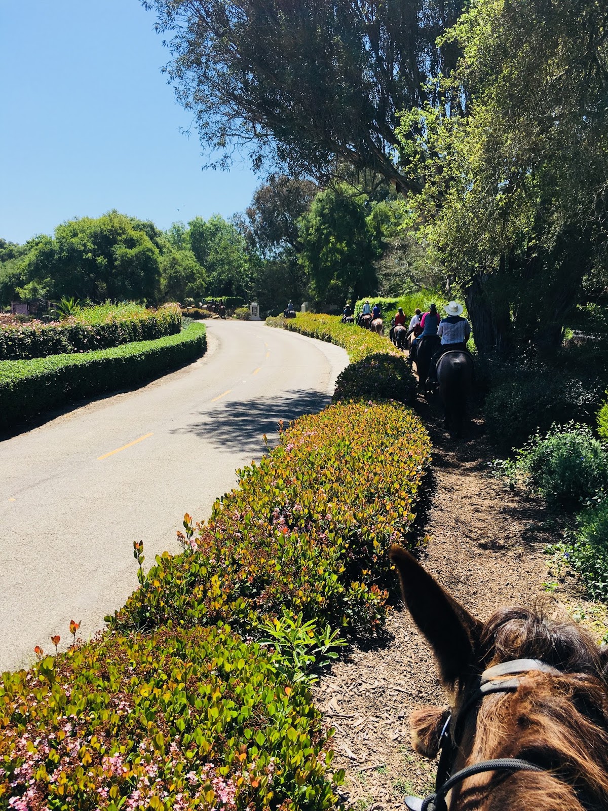 Then we returned to Hope Ranch, for a tour past some of the massive estates that look like hotels. They are bound by the community covenant to maintain trails alongside the roads, so that equines may pass safely without fear of the drivers of very expensive sports cars.