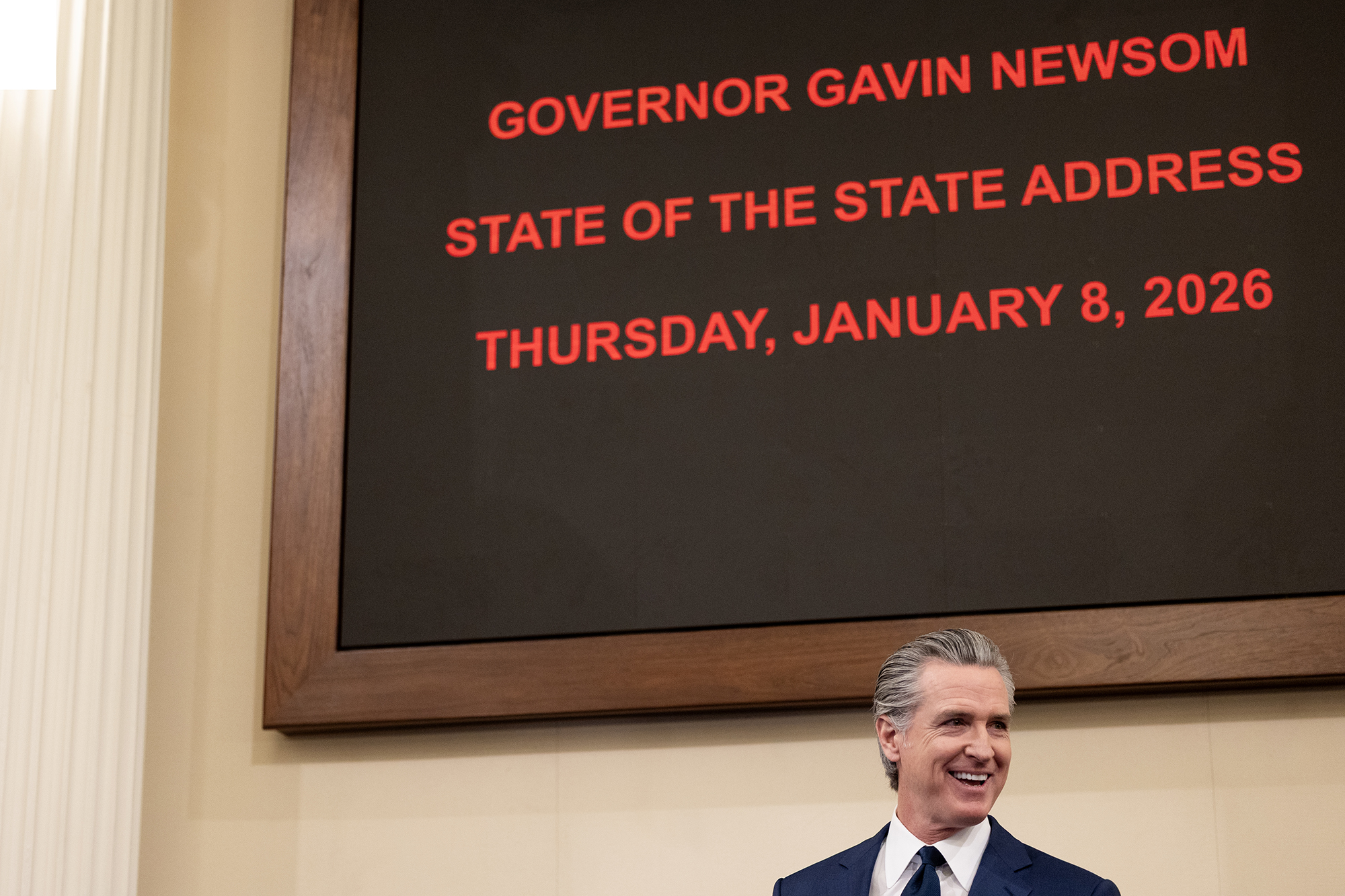 The address was also a preview of Newsom’s last budget proposal, to be released Friday.