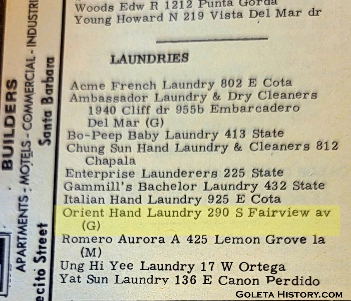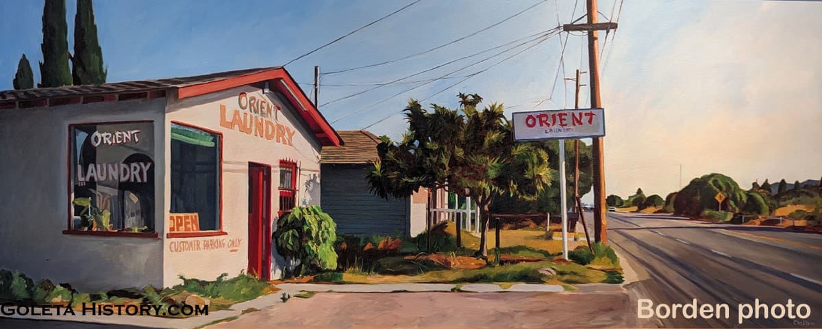 After this story posted, Goleta local Todd Borden sent us this beautiful rendition of the Orient Hand Laundry building, painted by Patricia Chidlaw in the 1990s. Thank you Todd.