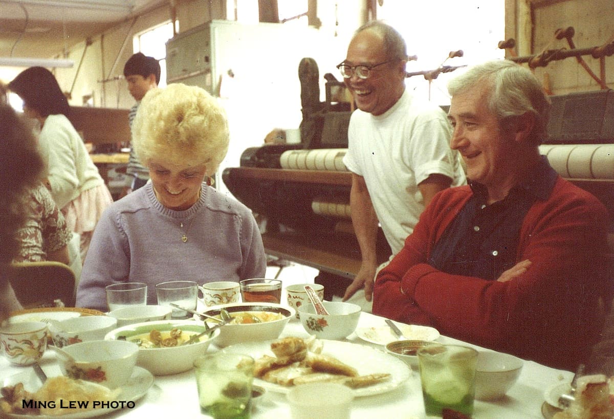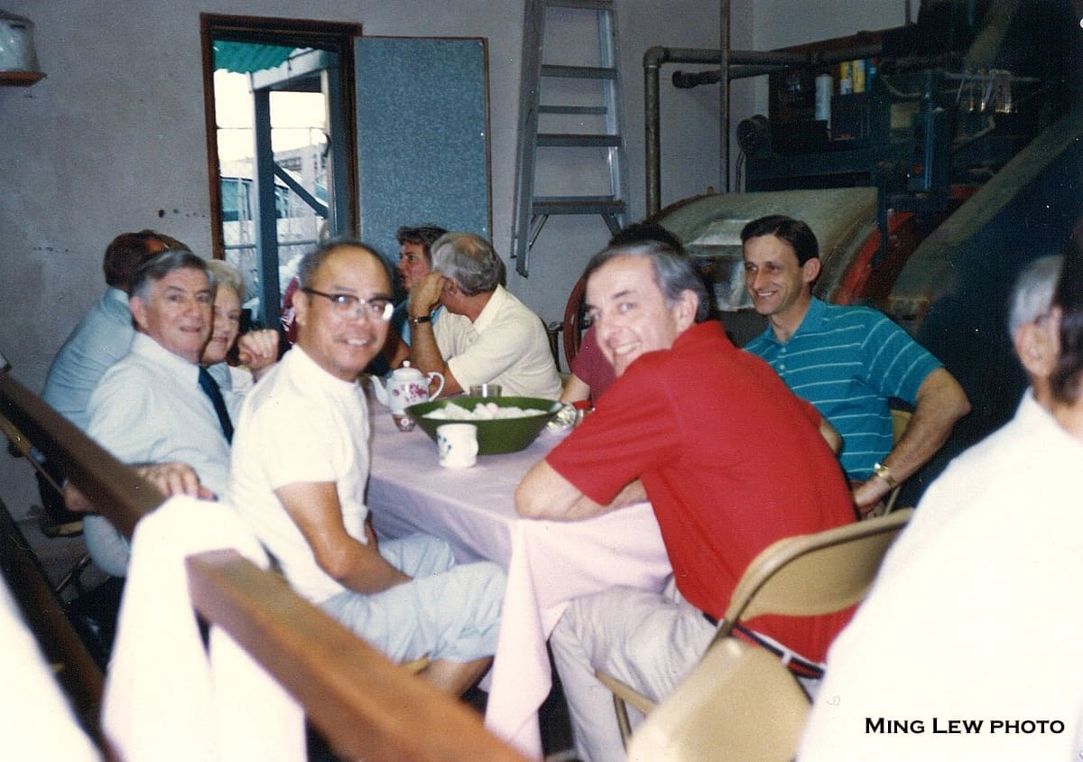 The Lews worked almost constantly, so there wasn’t a lot of time for social activities, but every Chinese New Year they would hold a large banquet and invite lots of friends. This, of course, also took place in the laundry! Notice the large washing machine in the background.
