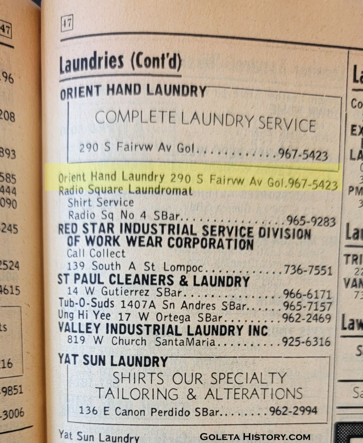I fondly remember Orient Laundry. I came to Goleta in 1963 after graduating from college in engineering. I used Orient to wash my white shirts after they opened in 1964. Always prompt and shirts neatly folded.