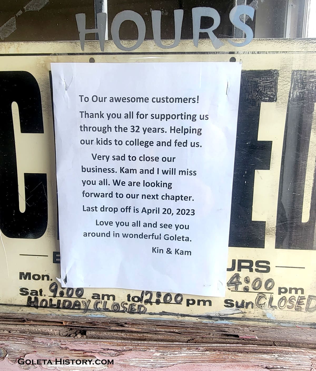 Good luck to Kin and Kam and thanks for taking over the orient Hand Laundry and being a valuable part of Goleta for over 30 years. We hope the next chapter of life is rewarding for them.