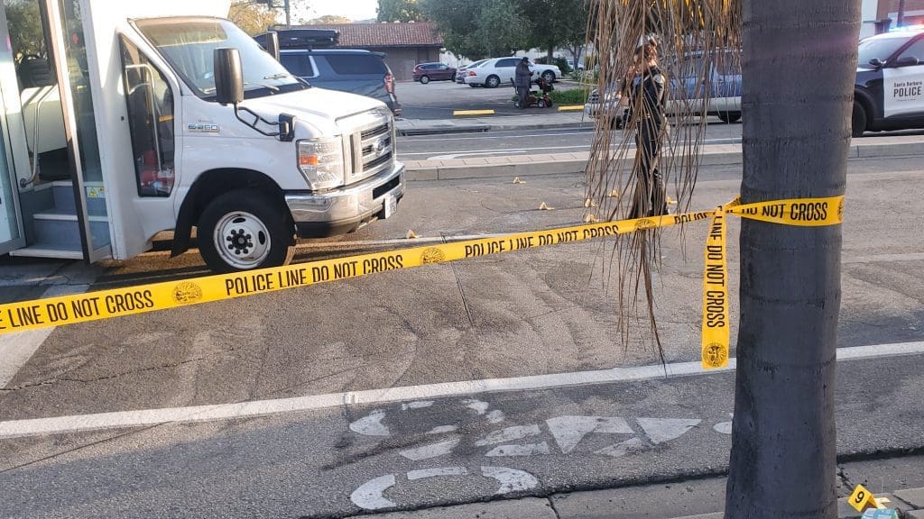 4/8? I was in the line of cars. The police guided us to the left into La Cumbre Plaza (across from Best Western). My dash cam didn’t pick up much aside from a green broken “basket” in front of the old people.bus that struck the individual. When we finally made it to Target and subsequently then leaving and driving the opposite direction back home…. they had pressure washed the area. Hope the guy is okay.