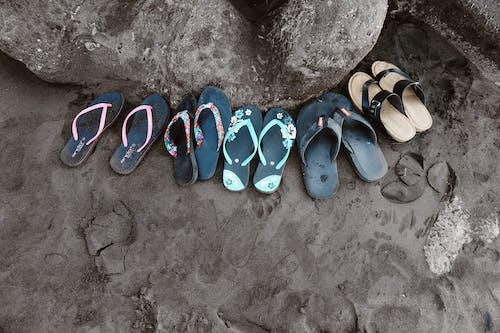 Don’t only wear flip-flops.Try switch up the flip-flops look once in a while. Replace it with a colorful slide or a white sneaker or just go barefoot on the beach!