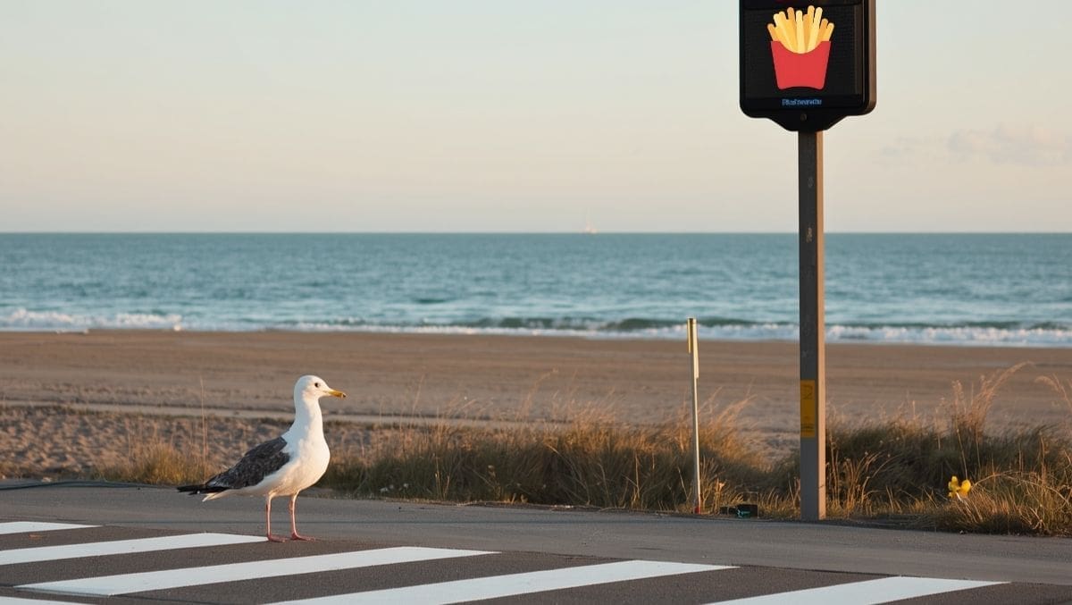 The pilot, slated for the stretch along Cabrillo Blvd near State Street and the Stearns Wharf entrance, features pint‑sized “Gull Lanes” stenciled with biodegradable breadcrumb paint and crosswalk signals that swap the usual “WALK” icon for a single golden french fry.
