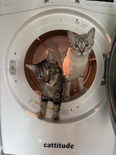 Here are our cats Bumblebee and Coconut. Cheers!