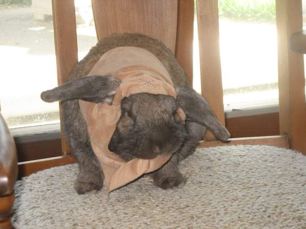 Charlie, a Holland lop, as an Ewok on May the 4th. Charlie is the house alarm clock, 5:30 every morning he is in the bedroom making sure we know it is breakfast time. Most afternoons around 4:30, we find him staring at the fridge waiting for his afternoon veggies.