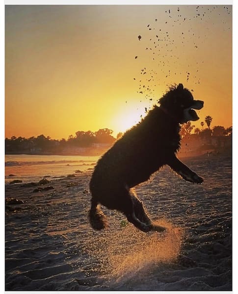 Daisy jumping for joy at Fernald Point and Daisy and Georgia enjoying sunset 🙂