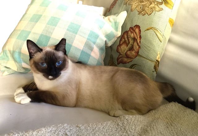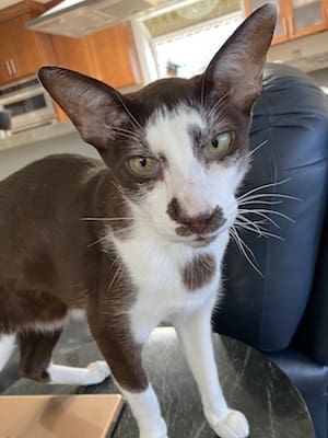 These two Oriental cats, Jake and Edgar, keep Jim and Ron as service staff