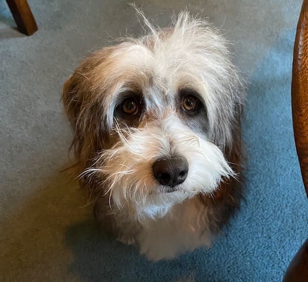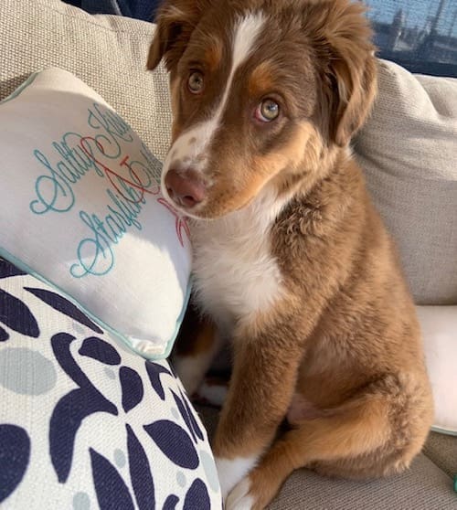 This is Emma, our 18 month old Aussiedoodle. Yes, a COVID puppy. She is named Emma because our last name begins with “M”!