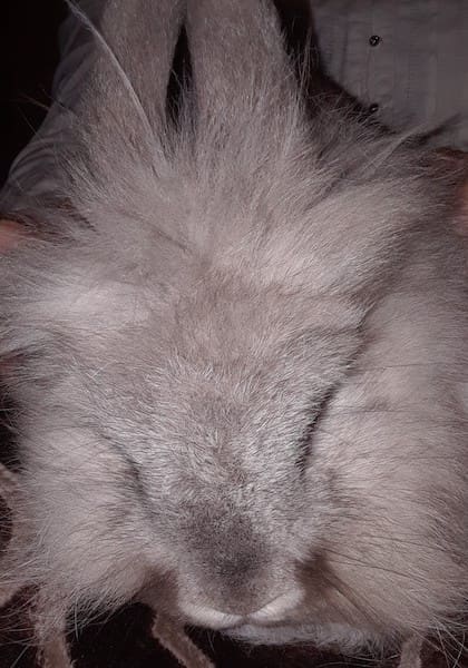 Errol, a lionhead, prefers his mate most of the time but loves his morning petting.