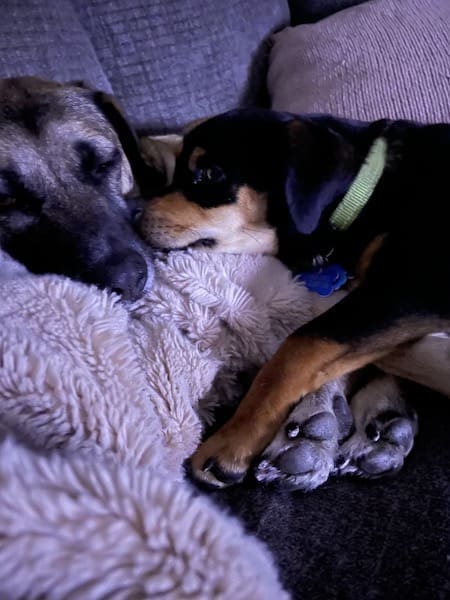 Felony age 14 passed away and Misdemeanor the pup we rescued. Look like twins. Healed our hearts.