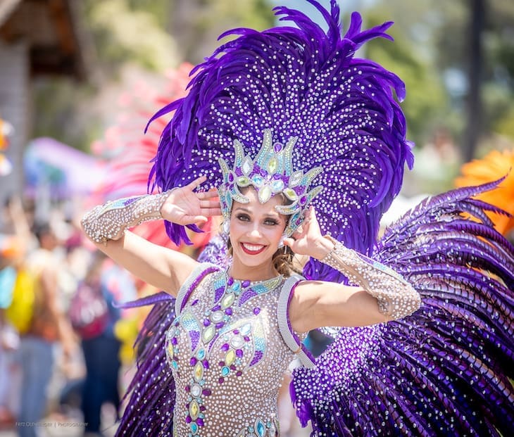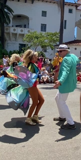 one of the best parades in many years! My dog Karma was dressed up, doing tricks for the crowd. What an amazing and fun time. So many colors and wonderful designs. The dancers were beautifully decorated, and their performances were fun to watch. So many smiling faces and happy people. Had a good time with my friends @SBPD, officers Kasper and Powell on their motorcycles keeping the street free of people and safe for the parade participants. Thanks guys! We know you were baking on those bikes and in all of that gear. Thanks for keeping it safe and fun for all of us!