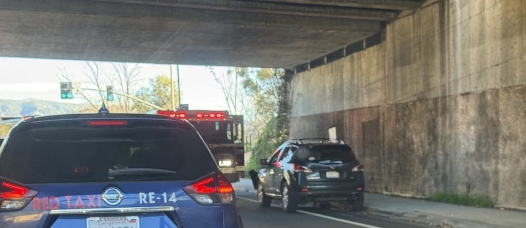 An edhat reader reports a traffic collision between at least two vehicles at the Mission Street Underpass on Wednesday morning.