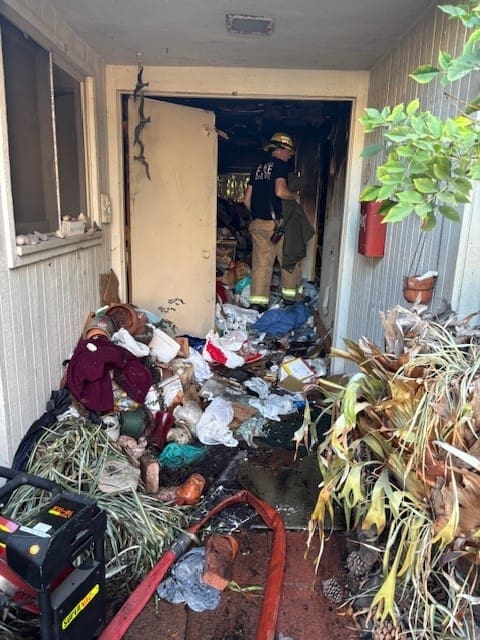 Initial reports were of two occupants trapped inside. When firefighters attempted to enter the structure, they encountered debris blocking all the entrances, including windows due to hording conditions.