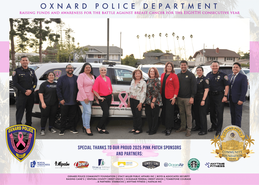 The year 2025 marked the eighth annual Oxnard Police Department Pink Patch Campaign. Each Fall, law enforcement agencies across the country participate in various ‘Pink Patch’–related efforts to raise funds and spread awareness for the battle against breast cancer.