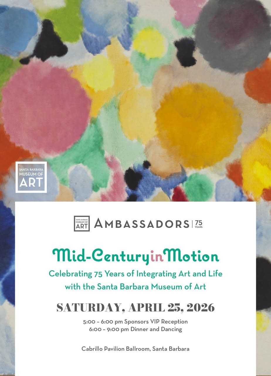Cabrillo Pavilion 1118 E Cabrillo Blvd, Santa Barbara, CA, Santa Barbara, CA, United StatesStep back into the stylish spirit of the 1950s and celebrate a milestone moment for the Santa Barbara Museum of Art. Mid-Century in Motion marks the SBMA Ambassadors’ 75th anniversary with an evening of dinner, dancing, and design-inspired fun, honoring a legacy that began in 1951 and continues to shape the Museum today. The evening will include: […]